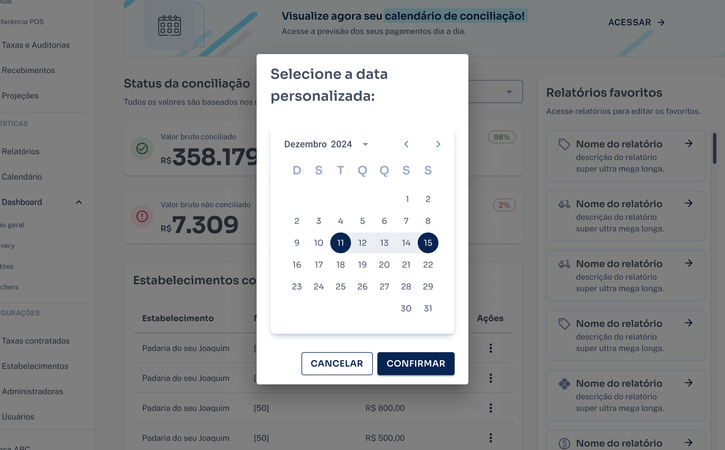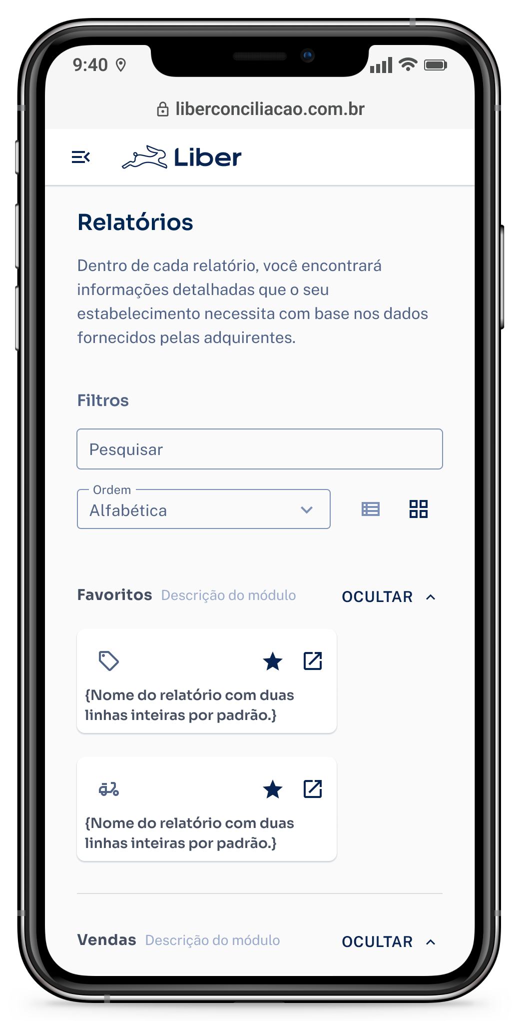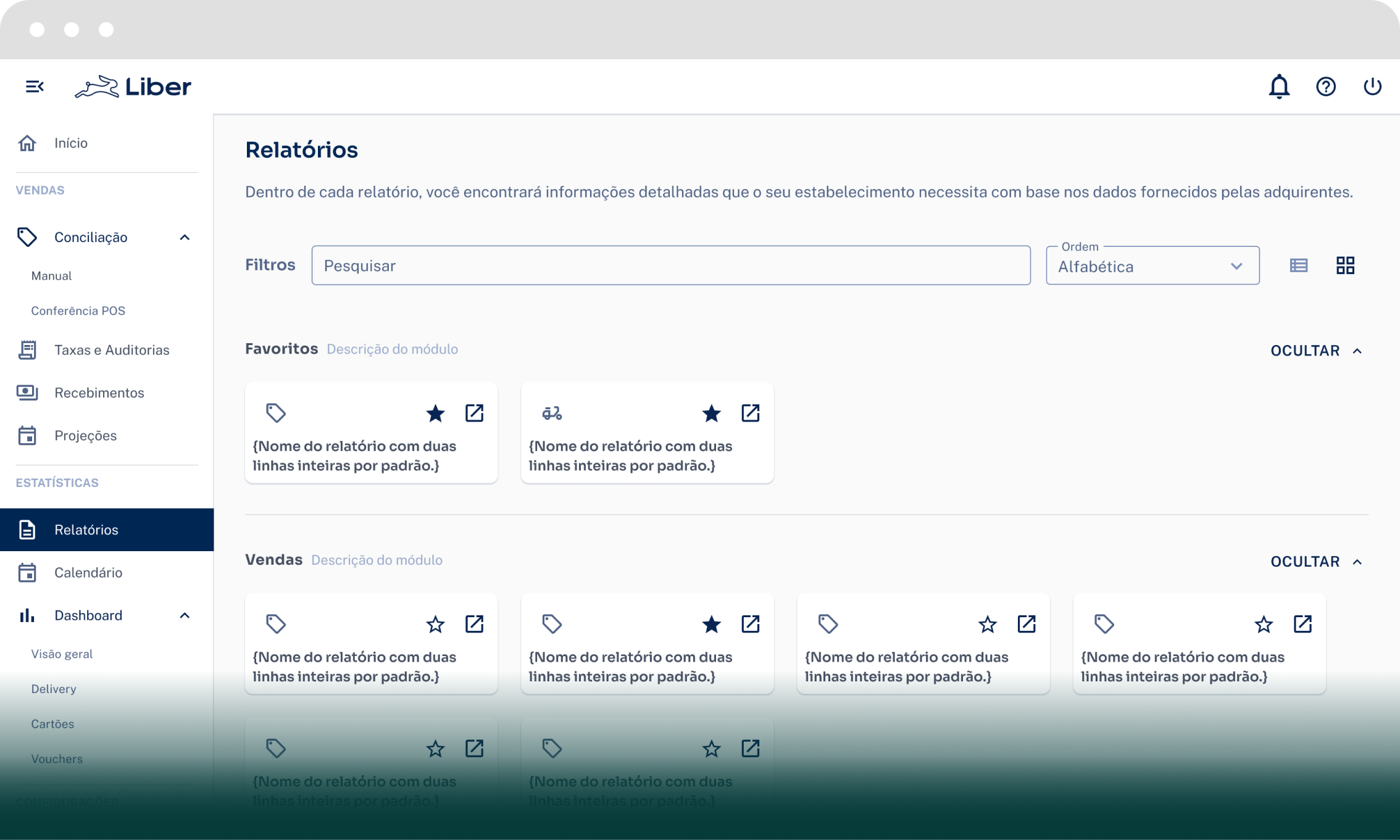 Nova página de relatórios - com nova barra de busca e funcionalidade de favoritos